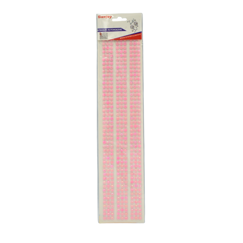 Strasurile au adeziv pe spate și se aplică rapid și simplu pe hârtie, carton, plastic sau alte suprafețe netede, fără a fi nevoie de lipici suplimentar.
