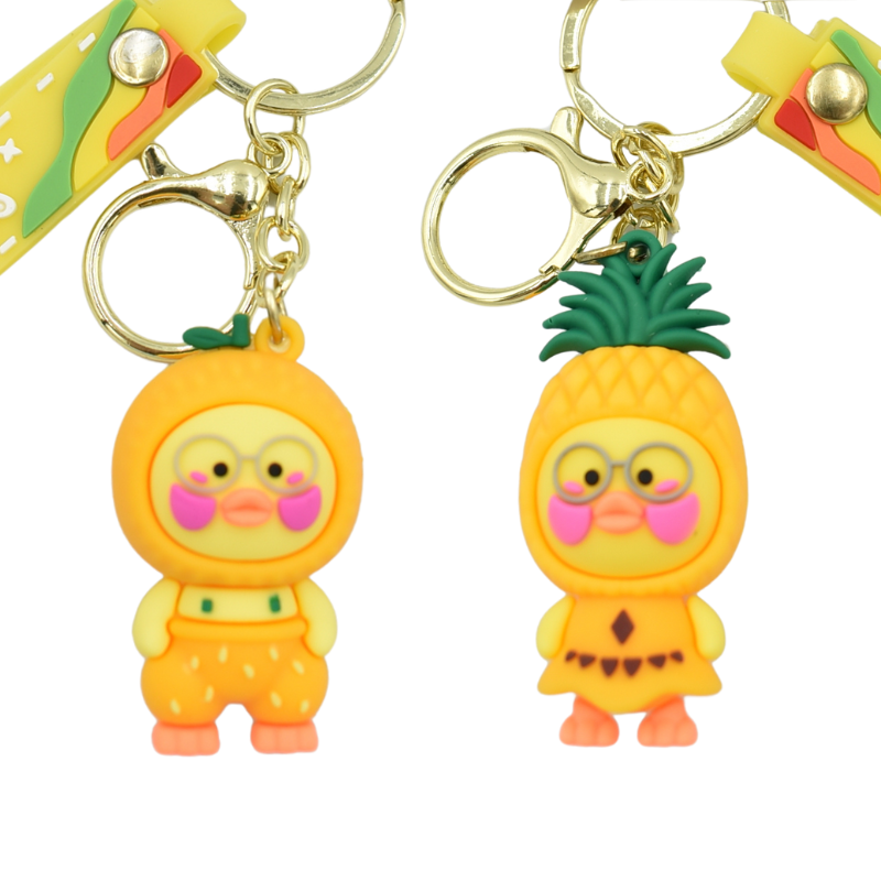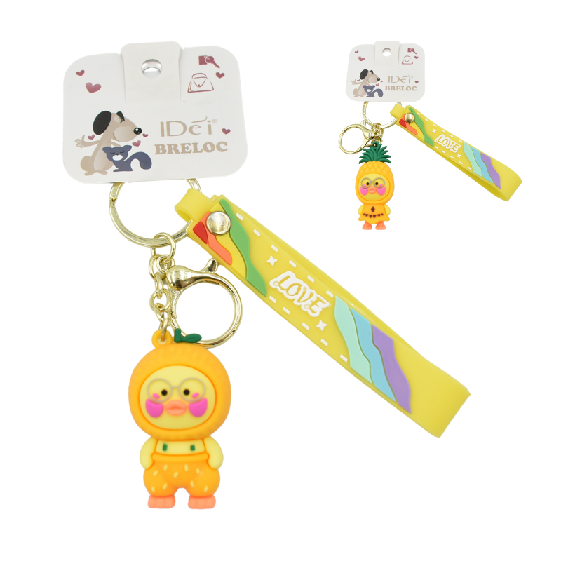 Brelocuri vesele în formă de portocală și ananas, perfecte pentru a adăuga un strop de culoare accesoriilor tale. Realizate din material flexibil și rezistent, sunt plăcute la atingere. Cu dimensiunea de 12 cm, sunt ideale pentru chei, ghiozdan sau geantă. Prețul afișat este la bucată.