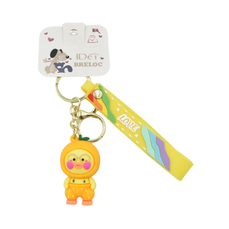 Aceste brelocuri de 12 cm au un design jucăuș și amuzant, inspirat din fructele portocală și ananas. Fiecare model este realizat din material flexibil și rezistent, cu detalii atent lucrate și culori vii, care atrag atenția. Curelușa decorativă galbenă, inscripționată cu mesajul „LOVE”, completează aspectul vesel și face brelocul mai ușor de prins și manevrat. Sunt ideale pentru a fi folosite la chei, ghiozdan sau geantă, fiind potrivite pentru copii, adolescenți și adulți care apreciază accesoriile amuzante. Aceste brelocuri sunt și o idee de cadou simpatic, perfect pentru a aduce zâmbete și voie bună.
