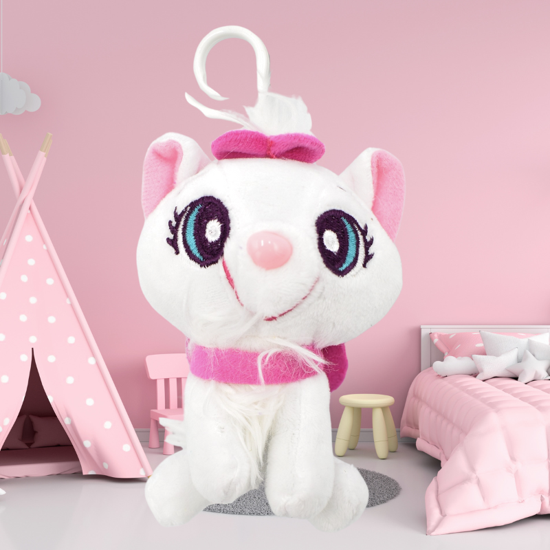 Acest breloc din plus în formă de pisicuță este adorabil și ușor de agățat datorită carabinei incluse. Materialul moale și expresia veselă îl fac perfect pentru a înveseli orice ghiozdan, penar sau chei. Dimensiunea de 10 cm este ideală pentru al purta oriunde.