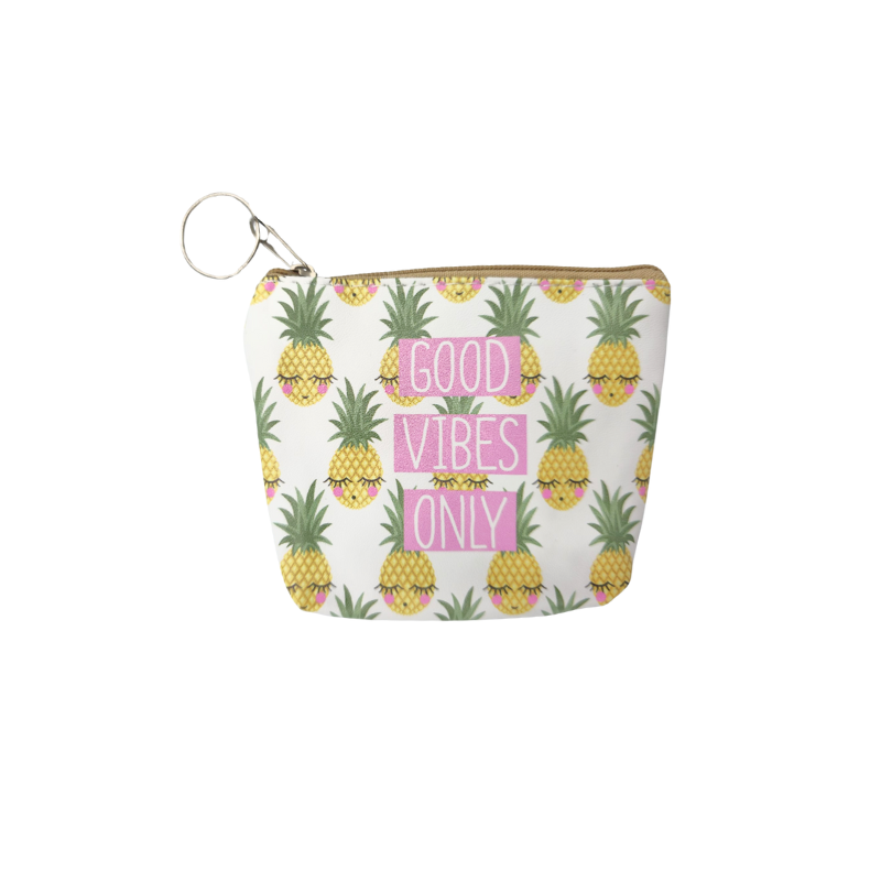 Gentuța breloc este un accesoriu practic și plin de personalitate, ideal pentru a depozita obiecte mici precum monedă, căști, elastice de păr sau mini-cosmetice. Materialul este ușor și flexibil, iar închiderea cu fermoar vă permite să păstrați lucrurile în siguranță. Fiecare model are un design vesel inspirat din vara tropicală, cu ananas, pepene sau mesaje motivaționale, ceea ce o face potrivită pentru copii, adolescenți sau oricine dorește un accesoriu simpatic. Gentuța este prevăzută cu un inel metalic astfel încât să poată agăța rapid la chei, genți sau rucsacuri.