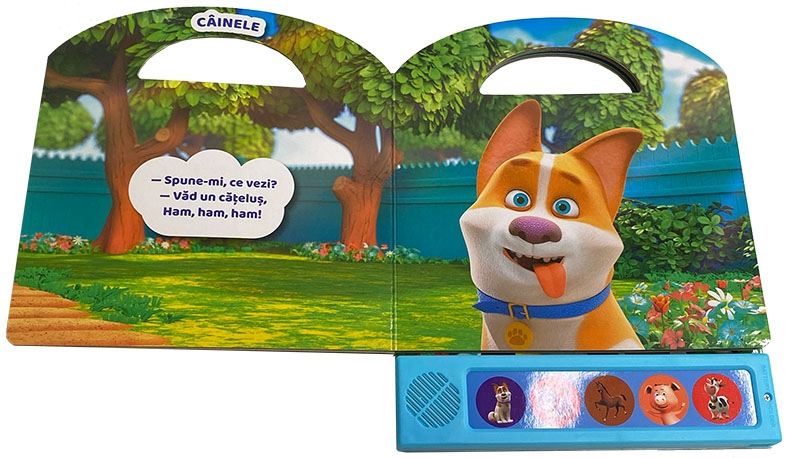 Micii exploratori vor învăța să recunoască animalele și să asocieze fiecare sunet cu imaginea corespunzătoare, stimulându-le atenția, curiozitatea și memoria auditivă. Cartea are pagini cartonate rezistente, concepute pentru a suporta numeroase răsfoiri, iar mânerul ergonomic o face ușor de ținut chiar și pentru cele mai mici mânuțe.