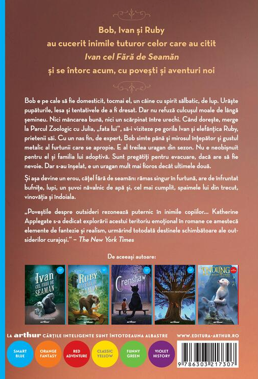 Cu mult umor, emoție și sensibilitate, povestea urmărește transformarea unui cățel care își descoperă curajul pas cu pas, până când devine un adevărat erou. „Bob cel Fără de Seamăn” este o carte despre prietenie, loialitate, vindecare și puterea de a te ridica în fața furtunilor – fie ele reale sau din suflet. Perfectă pentru toți iubitorii de animale și pentru cititorii care cred în poveștile care schimbă felul în care privim lumea.