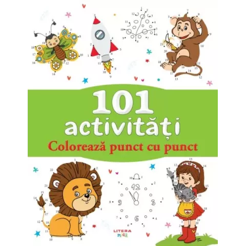 Cartea „101 activități. Colorează punct cu punct” de la Editura Litera îi oferă copilului ore întregi de distracție și învățare prin joacă. Prin unirea punctelor, micuții își dezvoltă atenția, coordonarea și răbdarea, iar desenul final le aduce satisfacția descoperirii. Imaginile simpatice, de la animale și obiecte până la personaje vesele, îi îndeamnă pe copii să își folosească creativitatea și să le coloreze după bunul plac. Această carte este un mod plăcut și educativ de a petrece timpul liber, transformând exercițiile într-o aventură amuzantă și captivantă.