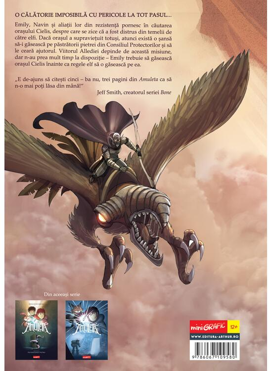 În Orasul din nori, al treilea volum al seriei Amuleta, Emily și fratele ei, Navin, alături de aliații lor din rezistență, pleacă într-o călătorie extrem de periculoasă. Ținta lor este orașul Cielis, despre care se spune că a fost distrus de elfi. Totuși, dacă acesta mai există, acolo s-ar putea afla păstrătorii pietrei din Consiliul Protectorilor – singurii capabili să-i ofere ajutorul de care au nevoie.