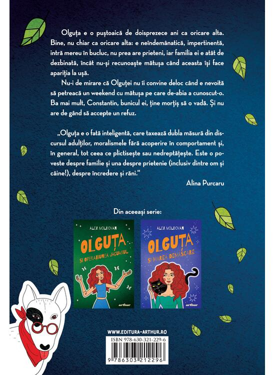 Olguța este o puștoaică de doisprezece ani care intră mereu în bucluc și nu prea seamănă cu ceilalți copii de vârsta ei. Viața ei ia o întorsătură neașteptată atunci când trebuie să petreacă un weekend cu o mătușă pe care abia o cunoaște și cu bunicul Constantin, care insistă să o vadă. O poveste plină de umor, mister și aventuri care te prinde de la prima pagină.