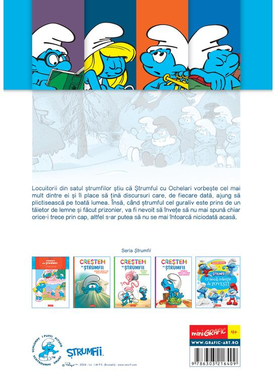„Esti prea guraliv Strumfule cu Ochelari” este al doilea volum din seria Povesti cu Strumfi, semnat de Alain Jost si Thierry Culliford. In satul strumfilor, toti stiu ca Strumful cu Ochelari este cel mai vorbaret, mereu pregatit sa tina discursuri care nu se mai termina. Dar atunci cand cade prizonier al unui taietor de lemne, descopera ca a vorbi fara oprire poate fi periculos. Pentru a scapa si a se intoarce acasa, el trebuie sa invete sa fie cumpatat si intelept. Cartea imbina umorul clasic al strumfilor cu o lectie importanta despre masura si atentie in comunicare, fiind o lectura distractiva si utila pentru copii.