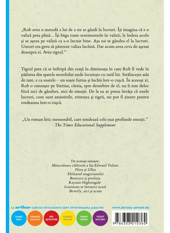Între cei doi se naște o prietenie aparte, iar prezența tigrului devine un simbol al lucrurilor care nu pot fi închise la nesfârșit. Prin această poveste, Kate DiCamillo vorbește cu sensibilitate despre pierdere, durere, prietenie și curajul de a înfrunta realitatea.
