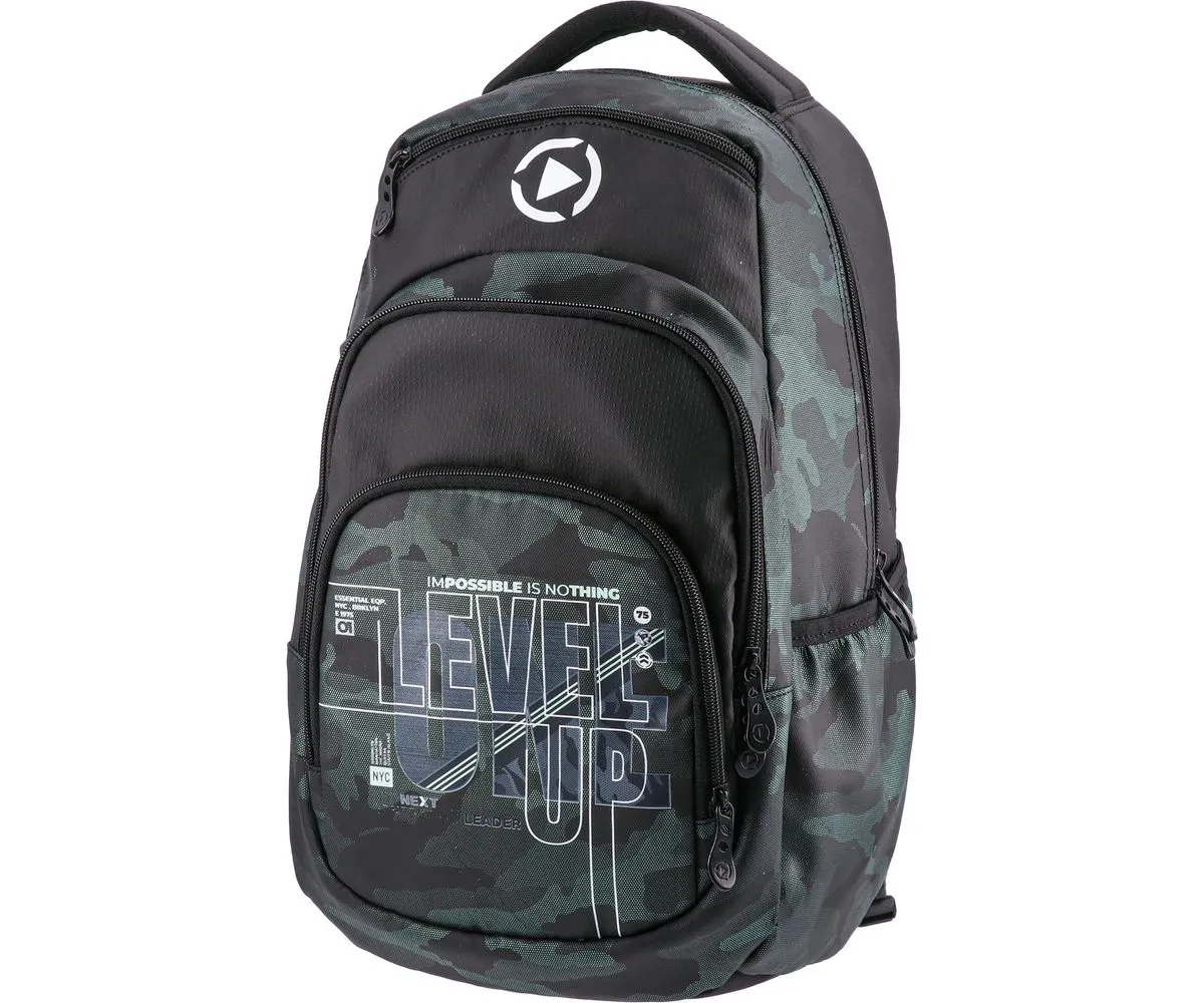 Cu un design urban în nuanțe de negru și imprimeu camuflaj, rucsacul Level Up se potrivește perfect oricărui stil și oricărei situații – fie că mergi la școală, la birou sau într-o excursie.