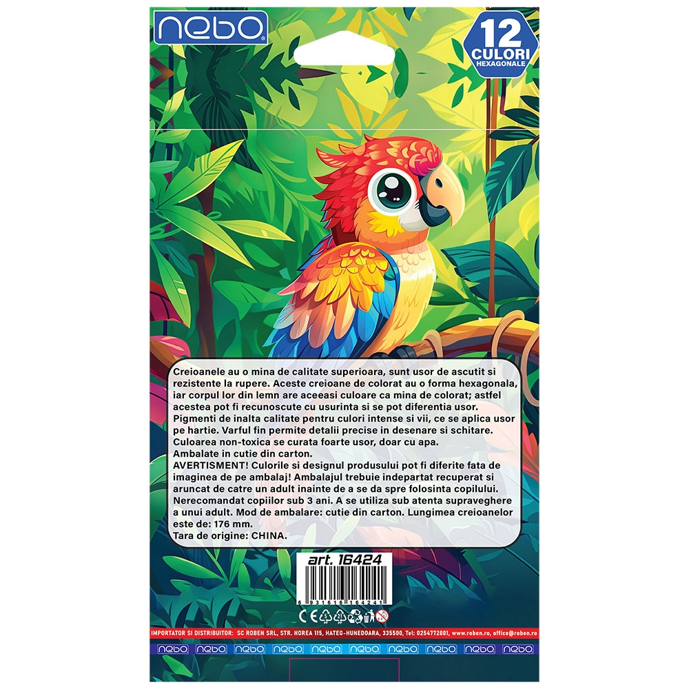 Descoperă bucuria desenului cu setul de creioane color NEBO Jumbo, perfect pentru copii și pasionații de artă. Culorile intense și mina groasă oferă o aplicare lină și uniformă pe orice suprafață. Forma hexagonală și corpul din lemn natural asigură o prindere confortabilă și stabilă în timpul utilizării.