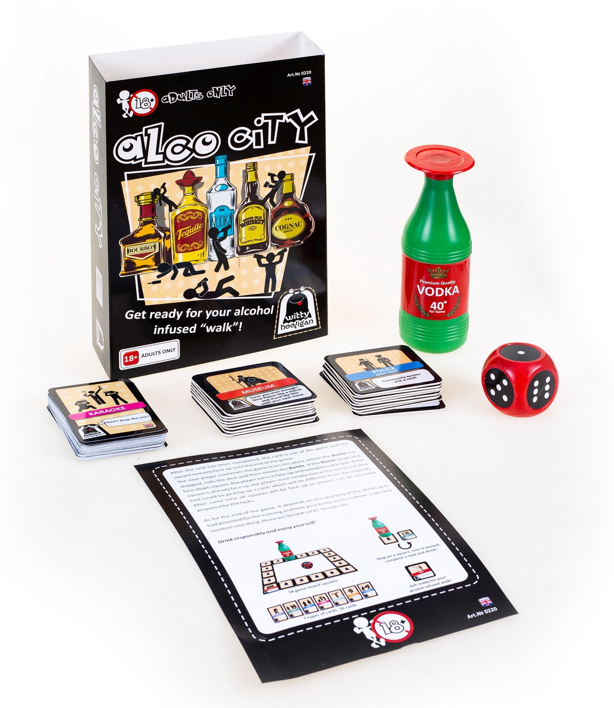 Alco City este un joc pentru adulti peste 18 ani din seria Witty Hooligan. În el veti avea ocazia sa va plimbati prin diverse locuri interesante pentru cunoscatorii vietii de noapte precum restaurante, discoteci, cluburi de striptease si nu in ultimul rand - biblioteca! Pentru a nu cadea in mainile politiei , trebuie sa va valorificati ingeniozitatea si maiestria! Pachetul contine: 56 de carti, un zar, 18 carti cu locatii. Jocul se poate juca in 2-10 jucatori.