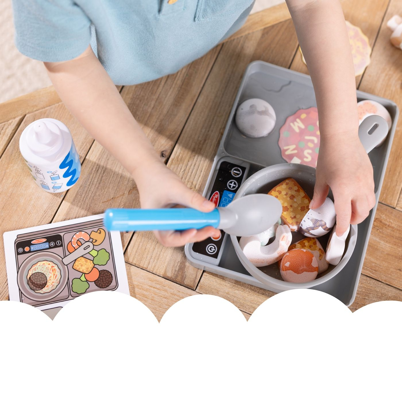 Aceasta jucarie interactiva le permite copiilor sa exploreze aventuri culinare prin simpla adaugare a apei. Pe masura ce amesteca, legumele si proteinele care isi schimba culoarea se transforma, creand o experienta incantatoare pentru micii bucatari. Setul include o lingura Water Wow! pentru dozarea apei, o oala si un aragaz pentru gatit si amestecat si o sticla pentru adaugarea unei note imaginative. Cartonasul reutilizabil pentru meniu le permite copiilor sa creeze mese in mod repetat, sporindu-le timpul de joaca creativ si educativ. Perfect pentru tinerii bucatari carora le place sa experimenteze in bucatarie, acest set de joaca ofera o modalitate unica de a invata si de a se distra. Lasa magia culinara sa inceapa in timp ce ei amesteca, gatesc si se bucura de transformare.