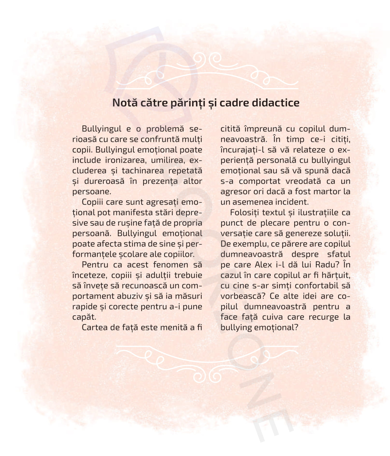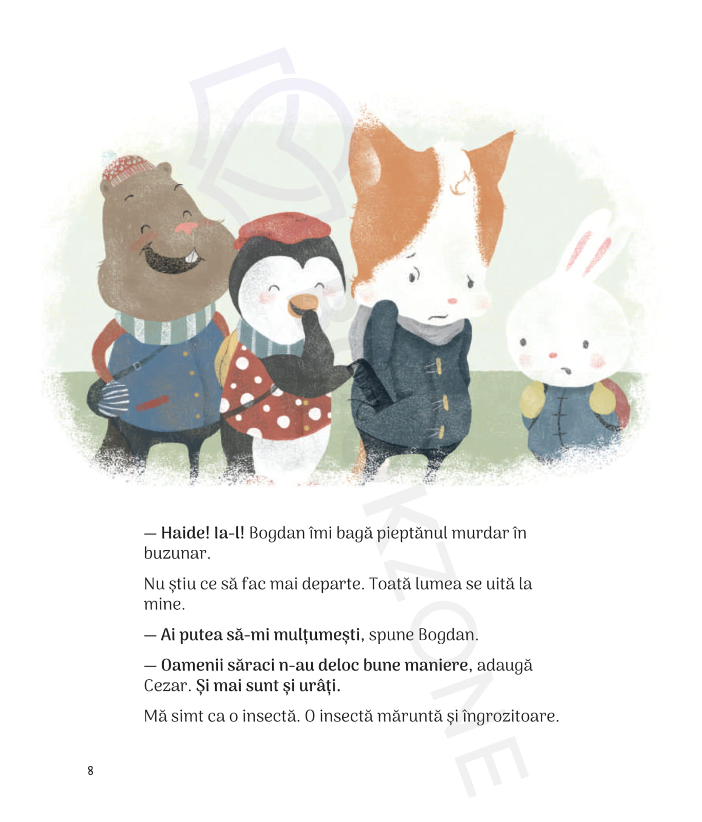 O carte ilustrată care îi ajută pe copii să recunoască bullyingul emoțional și să găsească modalități sănătoase de a reacționa atunci când sunt victime ale tachinărilor sau excluderii. Printr-o poveste simplă și personaje-animale simpatice, copiii învață empatie, curaj și importanța cererii de ajutor.