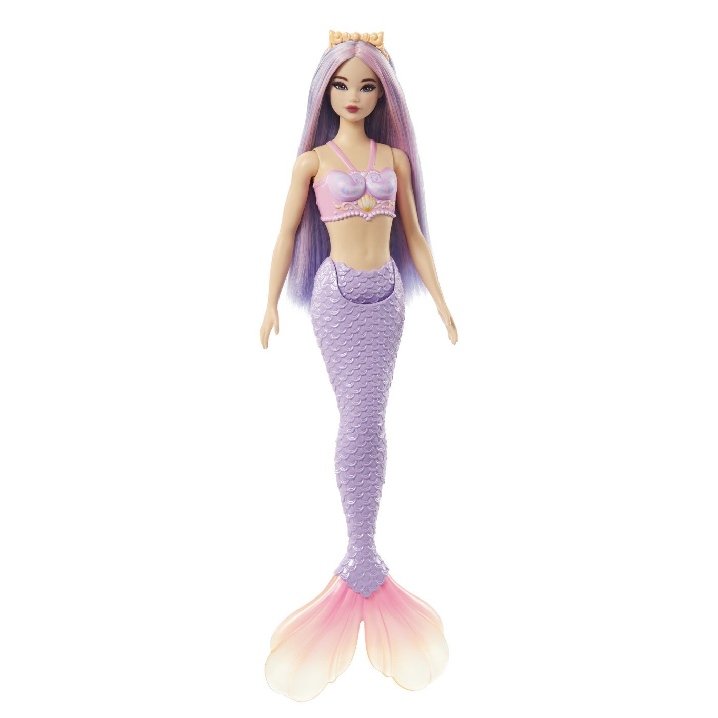 Copiilor le va placea sa viseze povesti submarine magice cu frumoasele lor papusi Barbie sirena! Fiecare sirena are un corset inspirat de scoici, coada sculptata si par de culoare fantastica, impodobita cu accesorii detaliate. Copiii de la 3 ani in sus pot colecta o varietate de sirene si pot merge in aventuri acvatice! Fiecare se vinde separat, in functie de disponibilitate. Papusile Barbie nu pot sa inoate sau sa stea singure. Culorile si decoratiunile pot varia. Acest pachet contine o papusa sirena cu parul mov si coada mov.