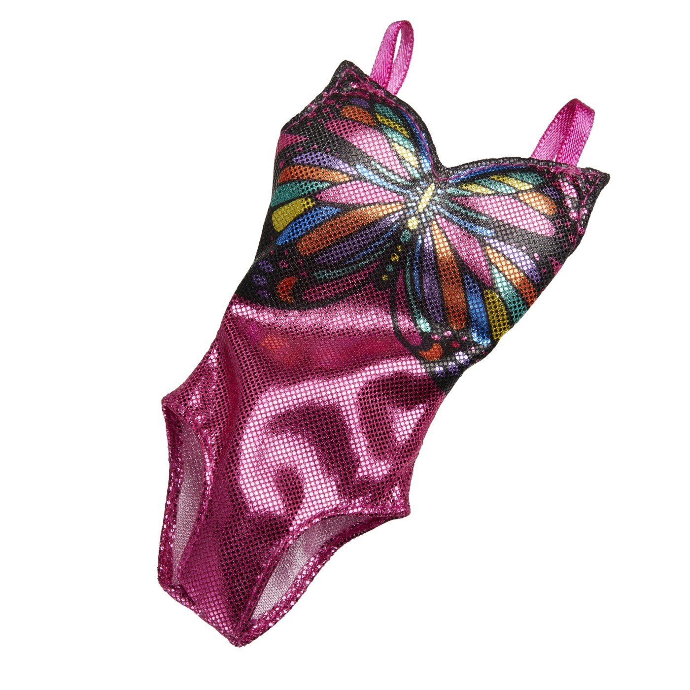 Gata de calatorie cu masina sau avionul. O valiza draguta, castile, o masca de fata si un accesoriu pentru smartphone sunt elementele esentiale perfecte pentru calatorie. Papusa Barbie este gata in costumul ei de baie stralucitor cu tematica fluture, palaria de soare, papucii elegante, ochelarii de soare si lotiunea de soare.
