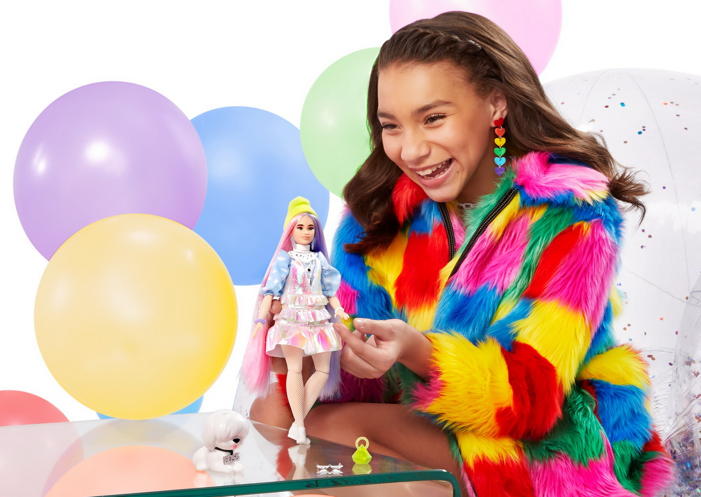 Papusile Barbie Extra etaleaza tinute indraznete, culori vii si iau atitudine! Fiecare papusa Barbie are propriul stil jucaus si exagerat. Animalele lor de companie sunt diferite, adorabile si au si ele o personalitate puternica! Barbie Extra permite copiilor sa exploreze exprimarea de sine prin stil si ofera o experienta de moda si stilizare captivanta, cu papusi ce prezinta articulatii. Barbie Extra reprezinta distractie la moda cu sclipici, ursuleti gumati, emoji si par distinctiv, aducand un vibe EXTRA oriunde merg. Fiecare se vinde separat, in limita stocului disponibil. Papusile nu isi pot mentine pozitia fara sprijin. Acest set contine o papusa cu par in nuante de mov si roz si poarta pe cap o caciula la moda verde fosforescent iar ca animal de companie are un catel alb.