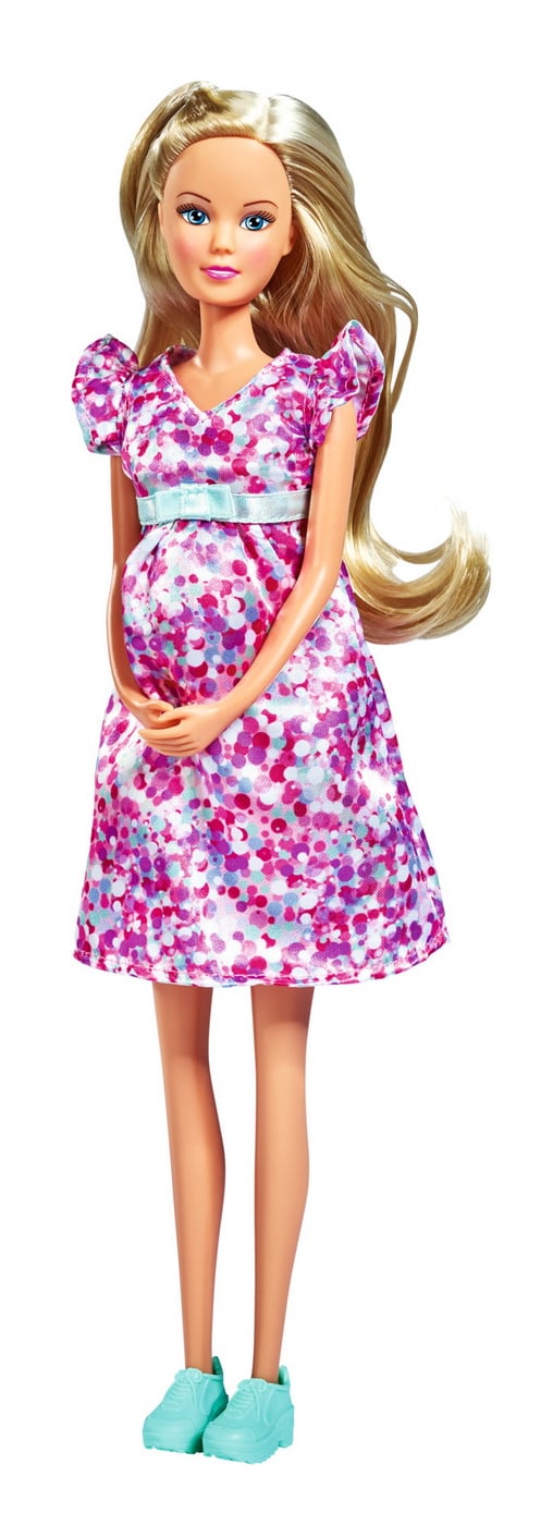 Steffi este insarcinata iar sexul bebelusului este o surpriza. Descopera daca va fi baietel, fetita sau chiar gemeni. Inaltime papausa 29 cm, setul include si 11 accesorii. Steffi LOVE este o adevarata papusa la moda. Îi plac hainele sic, coafurile la moda, sora ei mai mica Evi si, bineinteles, iubitul ei Kevin. Fetele isi pot coafa si imbraca papusa in tendintele actuale ale modei. Surpriza Steffi LOVE Baby este disponibila in trei rochii grozave. Selectia este aleatorie. Steffi este insarcinata si isi asteapta cu nerabdare copilul. Dar nimeni nu stie inca ce sex are bebelusul. Un baietel? O fetita? Sau poate chiar gemeni? Capac pentru burta care se poate deschide – pentru a afla numarul de copii si sexul, husa pentru burta poate fi indepartata cu usurinta si se poate naste un copil sau doi. Daca apoi va intoarceti stomacul, Steffi are un abdomen plat. Setul include un pachet surpriza grozav cu peste 11 accesorii potrivite pentru cei mici. Asa ca Steffi poate avea mare grija de bebelusii ei. Potrivit pentru copii de la 3 ani.