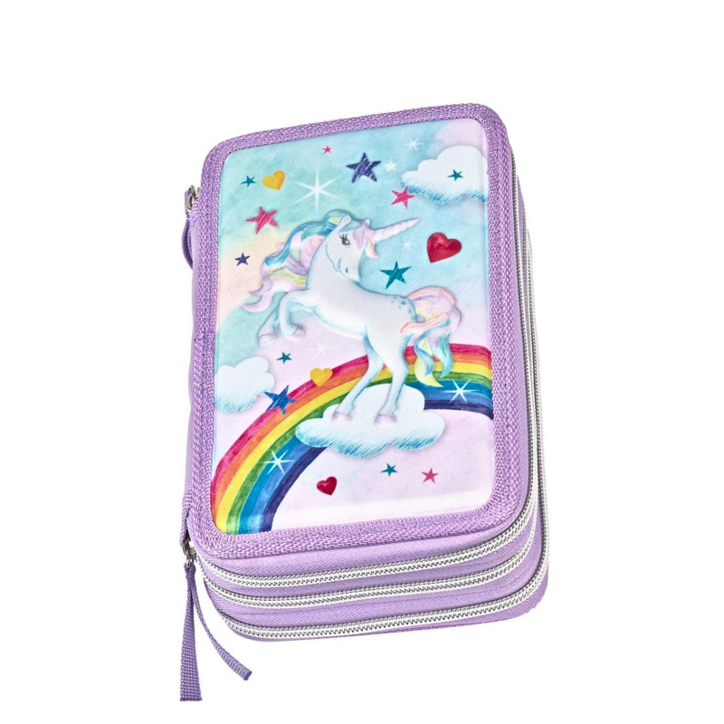 Penarul Unicorn cu 3 fermoare și 44 de piese este ideal pentru școlărițele din clasele primare care își doresc un penar complet echipat, dar și un companion simpatic în fiecare zi la școală.