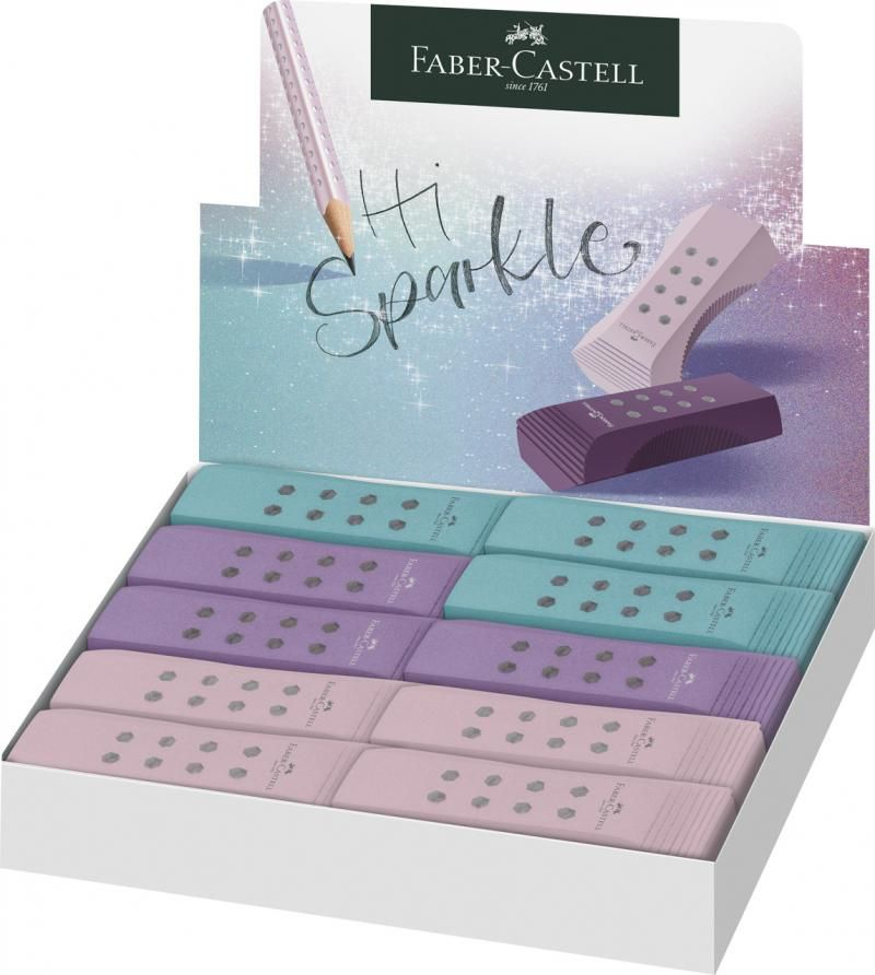 Este conceputa pentru stergerea optima a creioanelor grafit, fara a lasa urme neplacute pe hartie. Zonele laterale sunt prevazute cu un grip ergonomic, care asigura o prindere usoara si confortabila, prevenind alunecarea in timpul utilizarii. Punctele stralucitoare Sparkle adauga un efect vizual placut, transformand o radiera obisnuita intr-un accesoriu plin de personalitate.