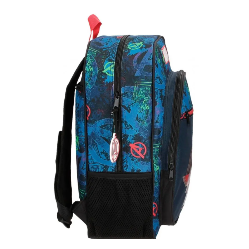Ghiozdanul Avengers, cu imprimeu colorat și personaje îndrăgite, este perfect pentru școală. Oferă un compartiment principal încăpător, buzunare frontale și laterale pentru acces rapid la accesorii, bretele ergonomice reglabile și un breloc tematic pentru un plus de personalitate. Designul practic și materialul ușor îl fac ușor de purtat zilnic, iar fermoarul cu două cheițe permite utilizarea unui lacăt sau a altor accesorii.