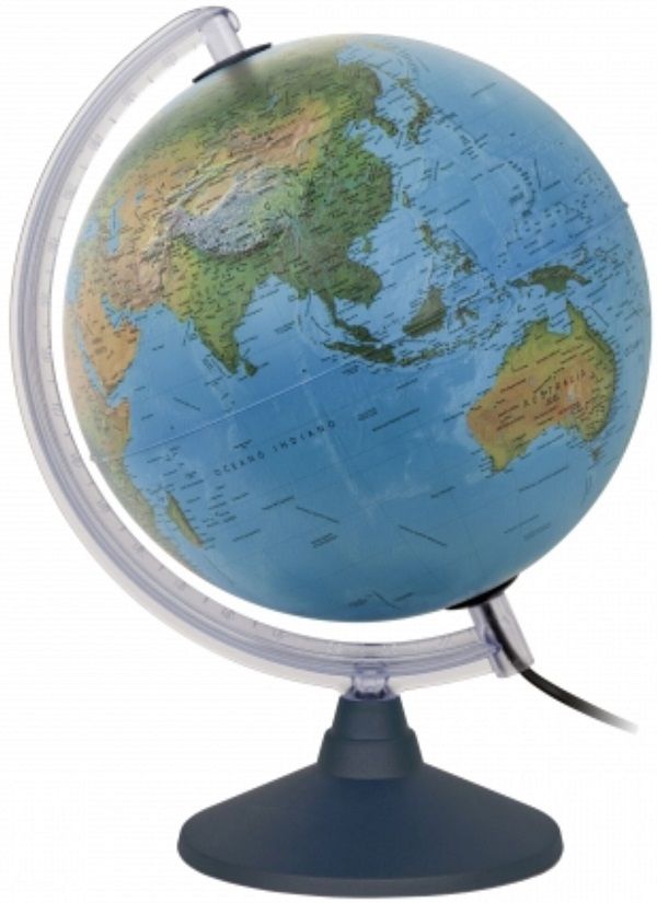 Glob geografic Elite cu diametrul de 25 cm. Globul are cartografia in limba romana. Ofera doua vizualizari ale Pamantului, fizica si politica. Globul este iluminat prin lumina electrica si se conformeaza masurilor de securitate impuse de Uniuna Europeana. Cablul are o lungime de 150 cm.