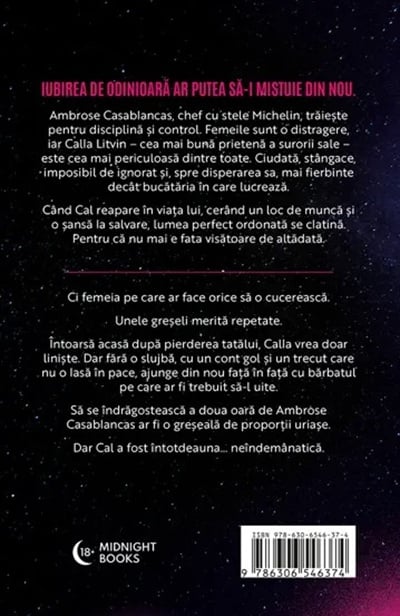 Ambrose, obișnuit să controleze totul în bucătărie și în viața lui, se trezește destabilizat de revenirea Callei, singura femeie care la privit cu adevărat dincolo de aparențe. Ea este „greșeala” pe care ar vrea să o repete, o prezență imprevizibilă și fierbinte, capabilă să-i schimbe întreaga lume. Calla, marcată de pierderea tatălui și de nesiguranțe, vrea doar liniște, dar ajunge din nou în mijlocul unui trecut care o brushează și o atrage în același timp.