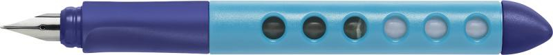 Stiloul școlar Scribolino albastru de la Faber-Castell este alegerea perfectă pentru micii începători, datorită designului ergonomic și a peniței de tip A, stabilă și rezistentă la presiune. Zona de prindere moale și confortabilă îi ajută pe copii să adopte poziția corectă a degetelor, facilitând o scriere naturală și relaxată. Ferestrele transparente permit controlul nivelului de cerneală, iar forma specială a capacului previne alunecarea de pe birou. Stiloul este compatibil cu cartușele standard de cerneală și a fost creat special pentru a sprijini stângacii în procesul de învățare a scrisului.