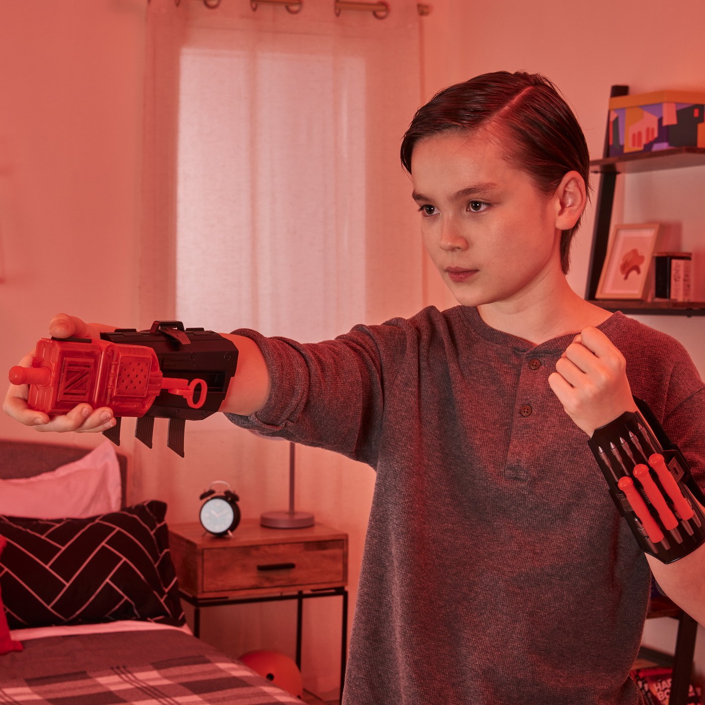 Apara Gotham City cu Batman Gauntlet! Aceasta manusa interactiva de joc de rol se potriveste chiar peste bratul tau si are detalii epice de stil de film, 6 accesorii blaster si o banda reglabila. Du-te la misiuni si lupte interesante! Puneti-va manusa si doborati-i pe cei mai nemilos super-rai din Gotham City, cum ar fi Pinguinul. tinteste-ti tinta, reincarca si repeta! Cu detalii autentice si banda reglabila, Batman Gauntlet da viata piesei clasice Batman – o jucarie obligatorie pentru baieti, fete si fanii Batman cu varsta de 4 ani in sus! O idee grozava de cadou pentru fanii DC. Angajati-va imaginatia si recreati momentele preferate ale filmului Batman. Pentru si mai multa distractie cu Batman, armeaza-te cu kit-ul Batman Detective (vandut separat) si mergi in misiuni. Ai ceea ce este nevoie pentru a deveni cel mai mare detectiv din Gotham City? Devino super-eroul tau preferat cu manusa Batman!