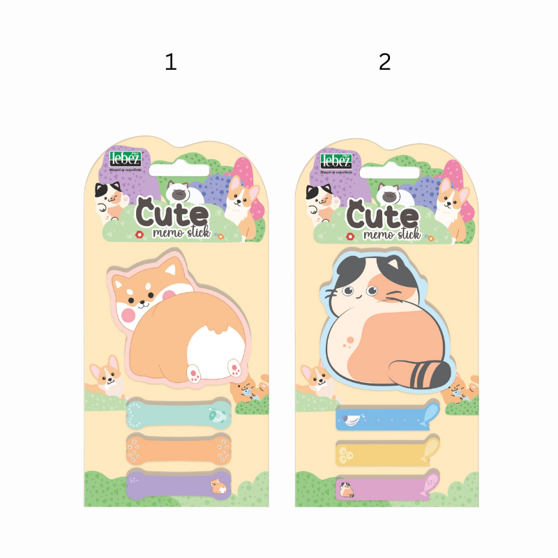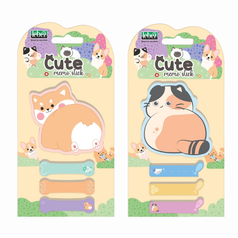 Bloc notes adeziv cu design adorabil, ideal pentru notițe rapide și organizare zilnică. Include un bloc notes principal și trei indexuri asortate, ușor de folosit și de repoziționat. Perfect pentru școală, birou sau acasă, cu un aspect vesel și prietenos.