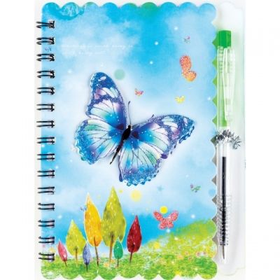 Notebook cu spirala si pix, dimensiuni 140x103mm, 30 de pagini, dictando, model fluture.