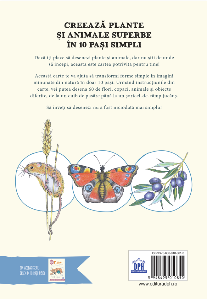 O carte practică și plină de inspirație pentru toți cei care iubesc desenul și natura! „Desen în 10 pași. Natură”, semnată de Mary Woodin, îi învață pe copii și adulți cum să redea frumusețea lumii naturale prin doar zece pași simpli și clari. Fiecare pagină te ghidează de la primele linii până la desenul final, ajutându-te să captezi detalii autentice și armonii de culoare.