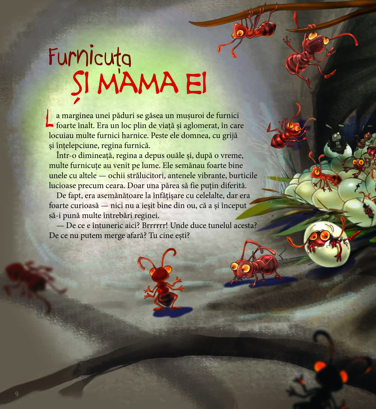 „Furnicuța Întreabă-Tot” este o poveste adorabilă despre dorința de a cunoaște, curiozitate și descoperirea lumii pas cu pas. Personajul principal, o mică furnicuță isteață, trăiește într-un mușuroi bine organizat și își întreabă mama despre tot ce vede și simte.