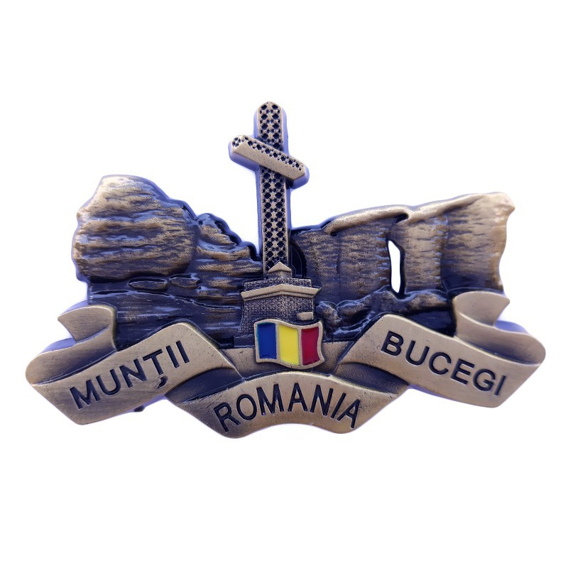 Magnetul metalic dedicat Munților Bucegi surprinde frumusețea naturală și simbolurile celebre ale zonei – Sfinxul misterios, formațiunile Babele și Crucea Eroilor de pe Caraiman. Designul său decupat și detaliile atent lucrate în relief redau fidel peisajul montan, completat de inscripțiile „Munții Bucegi” și „România”, alături de tricolorul național.