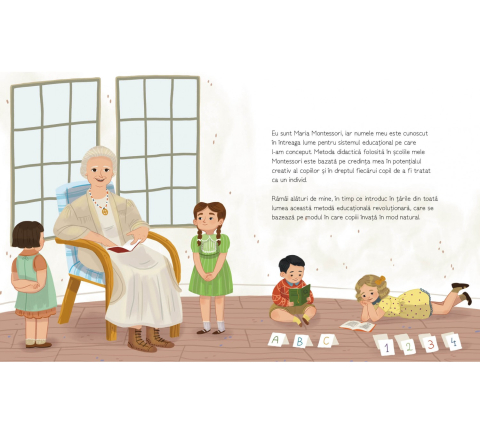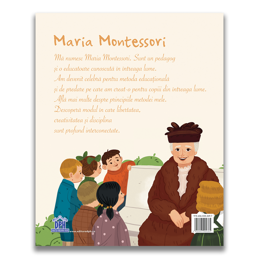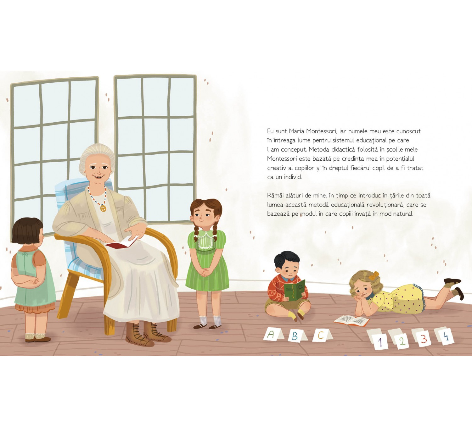 De-a lungul vieții, Maria Montessori a militat pentru drepturile copiilor și a călătorit în întreaga lume pentru a promova o educație centrată pe copil. Metodele sale, care i-au adus trei nominalizări la Premiul Nobel pentru Pace, sunt folosite astăzi în mii de școli din toate colțurile lumii. Cartea include ilustrații vii, o cronologie clară a vieții sale și un test interactiv care îi ajută pe copii să-și verifice cunoștințele. Prin stilul accesibil și informațiile interesante, volumul îi încurajează pe cei mici să creadă în propriul potențial și să descopere bucuria cunoașterii.
