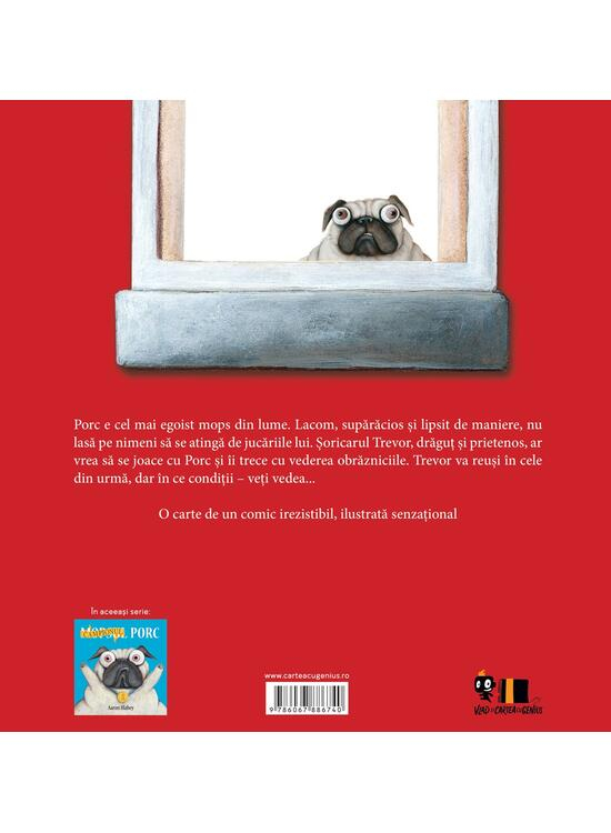 Porc este cel mai supărăcios și egoist mops din lume: lacom, obraznic și mereu gata de ceartă. Nu vrea să împartă nimic și nu lasă pe nimeni să se apropie de jucăriile lui. Trevor, șoricarul prietenos, încearcă să-i facă pe plac, dar surprizele nu întârzie să apară. O poveste amuzantă și plină de haz, perfectă pentru cititorii mici și mari.