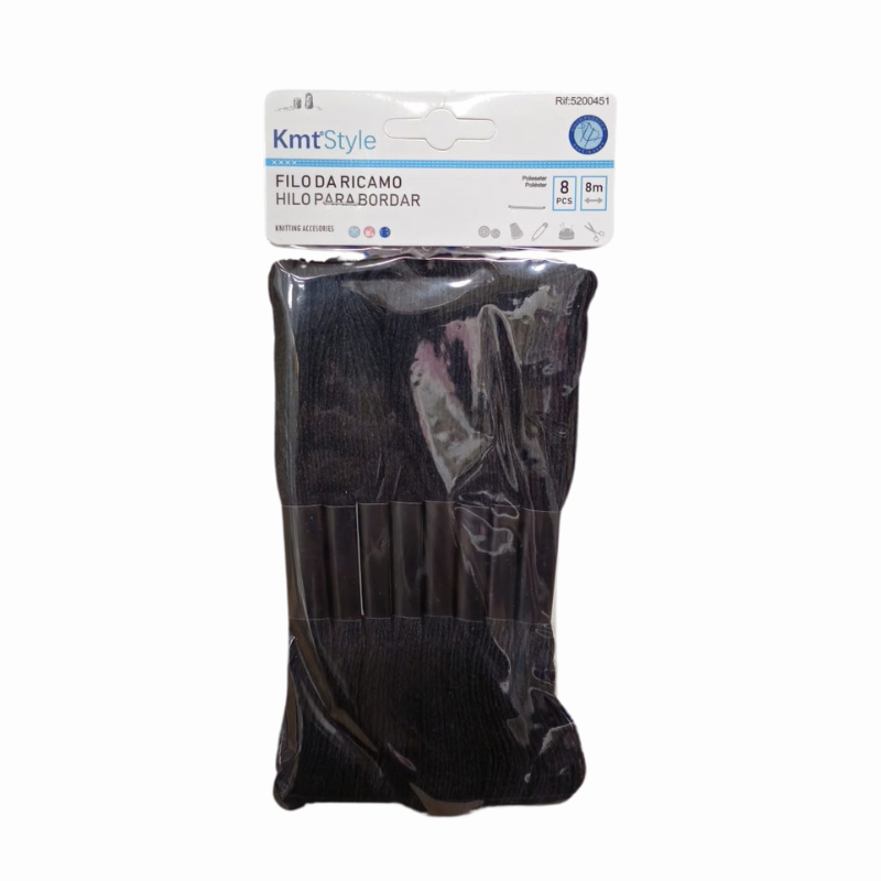 Setul conține 8 fire de ață pentru brodat, fiecare cu lungimea de 8 metri. Culoarea neagră este potrivită pentru contururi, detalii și modele contrastante. Ideal pentru broderie manuală și cusături decorative.