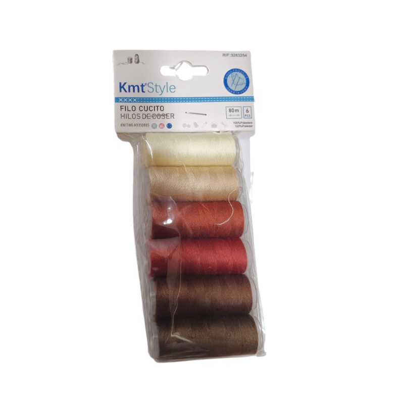 Set de ațe de cusut în nuanțe de bord, potrivit pentru reparații și proiecte textile variate. Fiecare rolă are 80 m, fiind ideală pentru cusut manual sau la mașină. Un set practic, ușor de integrat în orice trusă de croitorie.