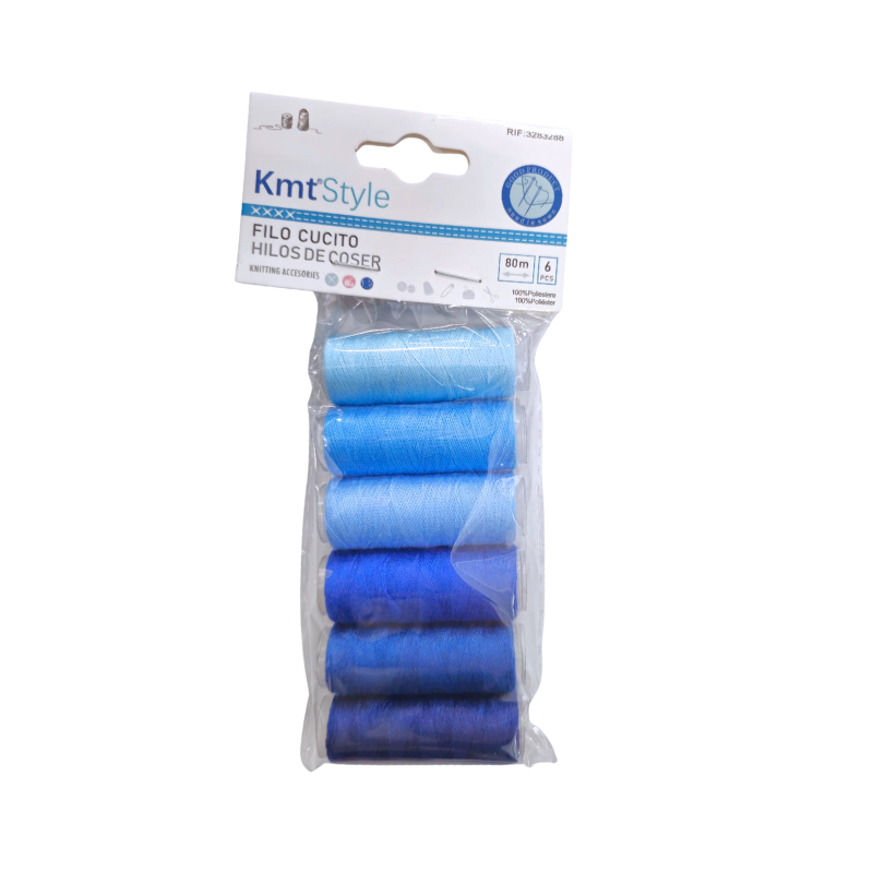 Setul conține 6 rol de ață de cusut în nuanțe diferite de albastru, ușor de asortat cu o varietate de materiale textile. Fiecare rolă are o lungime de 80 m, oferind suficient fir pentru lucrări uzuale de cusut, ajustări, reparații sau proiecte handmade.