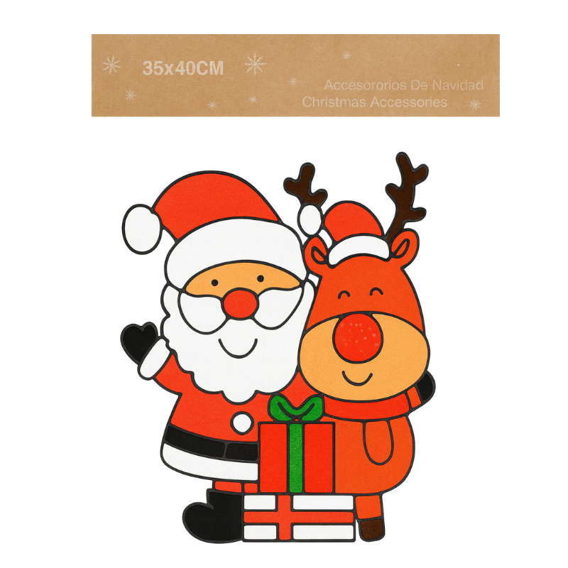 Acest autocolant de Crăciun aduce instant magia sărbătorilor pe orice suprafață netedă. Îl aplici ușor și îl îndepărtezi fără urme, fiind perfect pentru ferestre, uși sau mobilier. Modelele vesele transformă orice spațiu într-un colț festiv plin de culoare.