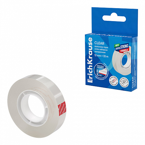 Banda adezivă din gama Clear de la ErichKrause reprezintă soluția optimă pentru activitățile zilnice de birou, școală sau uz casnic, oferind o performanță superioară în utilizare. Caracteristica sa principală este grosimea mare a stratului adeziv, care asigură o fixare instantanee pe diverse suprafețe din hârtie sau carton. Datorită formulei speciale „Super Strong”, banda oferă o aderență ridicată, rămânând în același timp discretă datorită gradului mare de transparență.