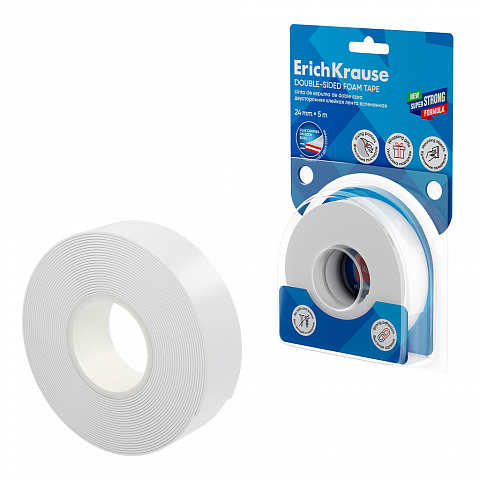 Banda dublu adeziva din spuma ErichKrause 24 mm x 5 m alba