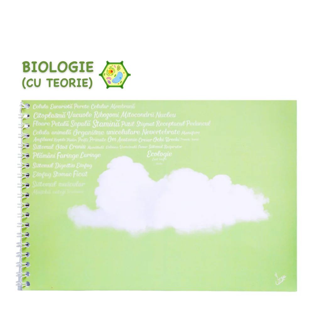 Caietul de biologie Izzie in format B5 este un instrument interactiv conceput pentru elevii claselor V–VIII, continand 4 pagini de teorie esentiala despre celula, tesuturi si sistemul osos. Acesta faciliteaza organizarea studiului prin elemente precum cuprinsul structurat, dictionarul personal de termeni si intrebarile de reflectie pozitionate pe marginea paginilor.