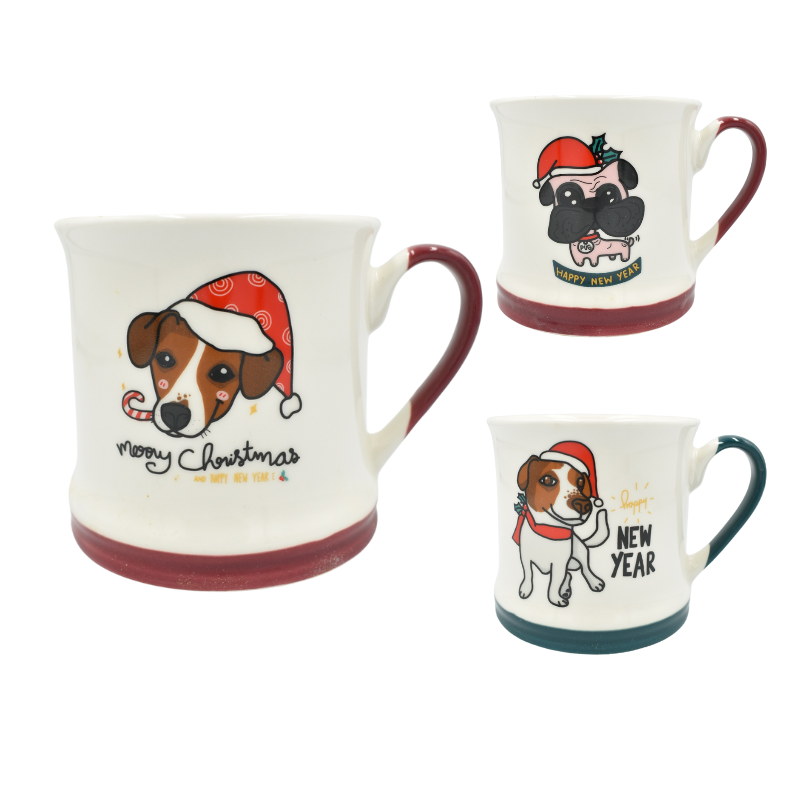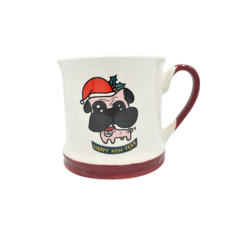 Această cană de ceramică cu imprimeu vesel de cățel aduce instant un strop de bucurie în fiecare zi. Este potrivită ceai, cafea sau ciocolată caldă, fiind ușor de ținut pentru mânerul confortabil. Culorile plăcute și tematice de sărbătoare sau fac ideală pentru cadouri sau pentru colecția ta de iarnă.