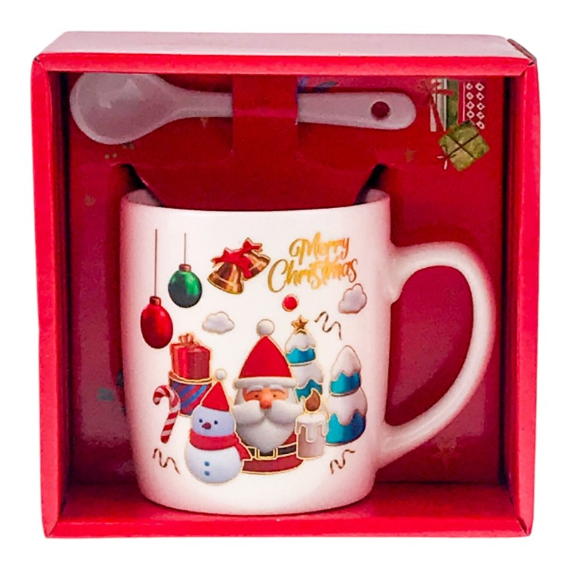 Cana ceramică cu linguriță este perfectă pentru a te bucura de băuturile tale preferate în atmosfera magică a sărbătorilor. Modelul festiv aduce un plus de culoare și veselie în fiecare dimineață. Este o idee frumoasă de cadou pentru cei dragi.