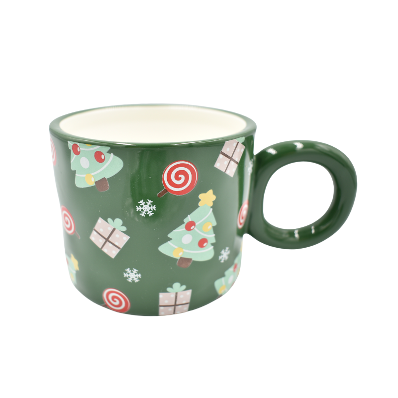 Cana are o capacitate de 400ml si este decorata cu braduti, cadouri, acadele si fulgi de nea pe un fundal verde. Este insotita de un capac decorativ prevazut cu un bradut in miniatura, care adauga un plus de farmec si ajuta la mentinerea temperaturii bauturilor. Cana este ideala pentru a fi folosita acasa sau la birou in perioada sarbatorilor si poate reprezenta si o idee frumoasa de cadou festiv.