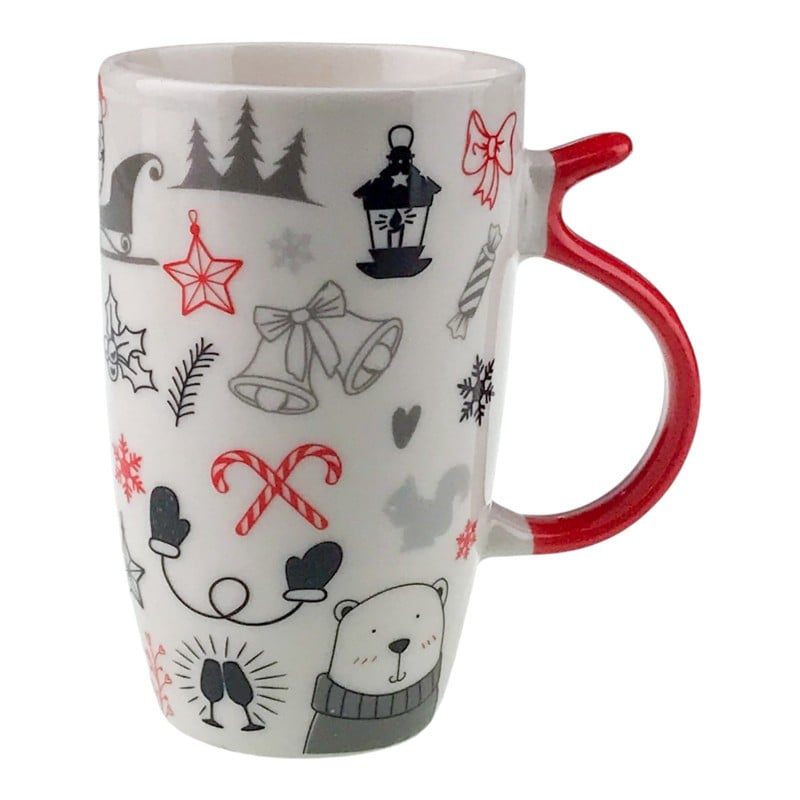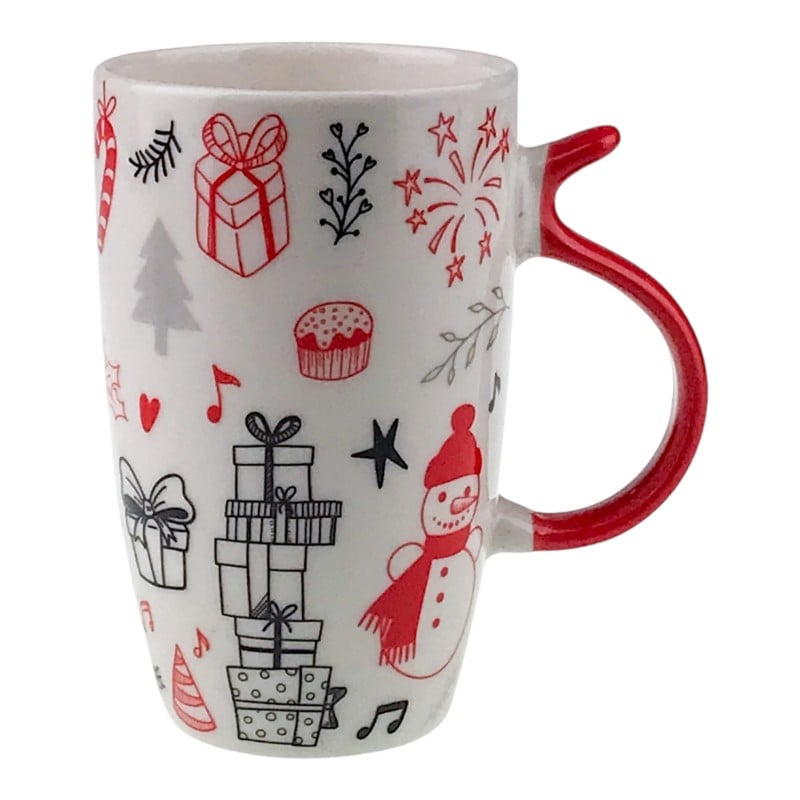 Cana are un design festiv cu elemente specifice iernii, perfecte pentru a-ți însenina momentele în care savurezi sau băutură caldă. Formă înaltă, contur elegant și mâner colorat care oferă o prindere comodă. Ilustrații moderne în nuanțe de roșu și gri o transformă într-o piesă decorativă plăcută, ușor de integrat în atmosfera sărbătorilor.