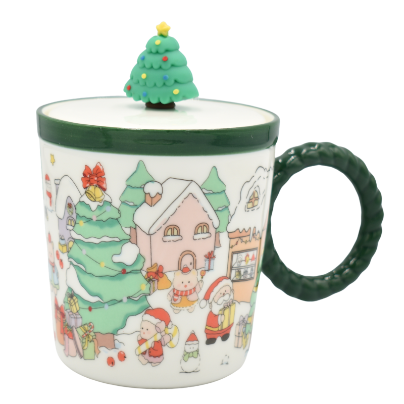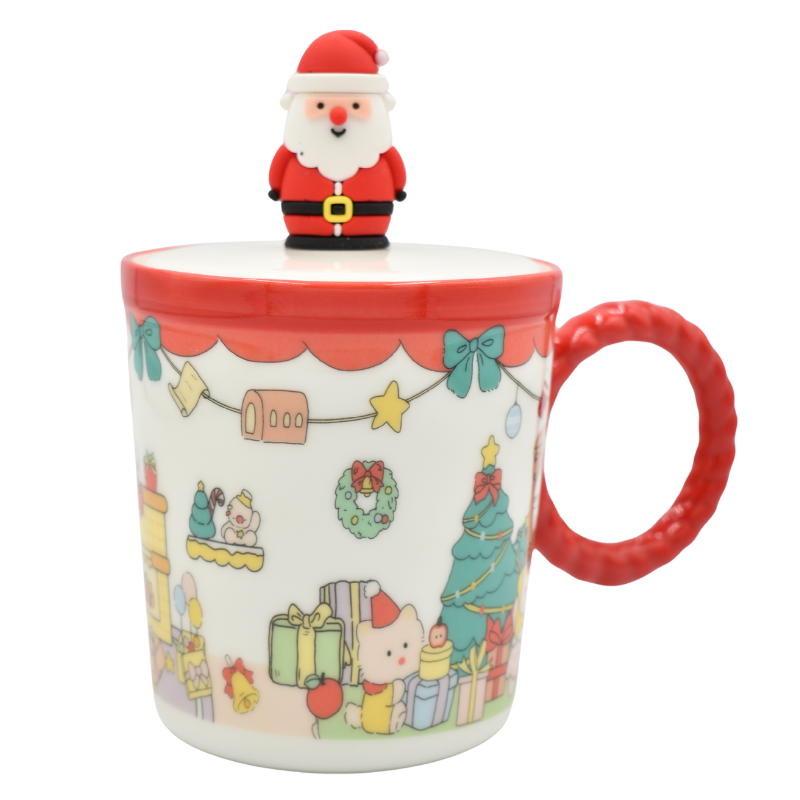 Bucură-te de savoarea băuturilor tale preferate în această cană din ceramică cu capac, decorată cu motive vesele de Crăciun. Modelul colorat aduce un plus de magie și căldură în fiecare zi de iarnă. Este perfectă pentru acasă sau pentru a fi oferită cadou cuiva drag.
