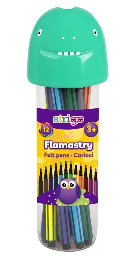 Setul Strigo Dinozaur conține 12 carioci în culori intense și vibrante, ideale pentru școală și activități creative. Cariocile au corp din plastic și capac, fiind potrivite atât pentru dreptaci, cât și pentru stângaci. Ambalate într-un tub practic cu design vesel, tematică dinozaur.