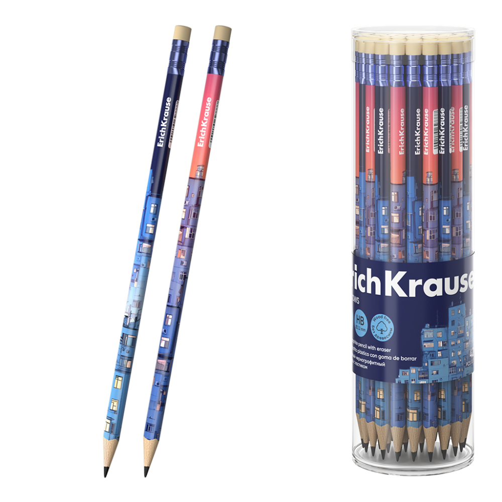 Designul colectiei Windows prezinta un imprimeu urban detaliat cu ferestre si cladiri, disponibil in variante de culori precum albastru inchis sau roz coral. Aspectul sau creativ si calitatea constructiei fac din acest creion ErichKrause o alegere excelenta pentru cei care cauta un instrument de scris fiabil, care sa iasa in evidenta prin stil.