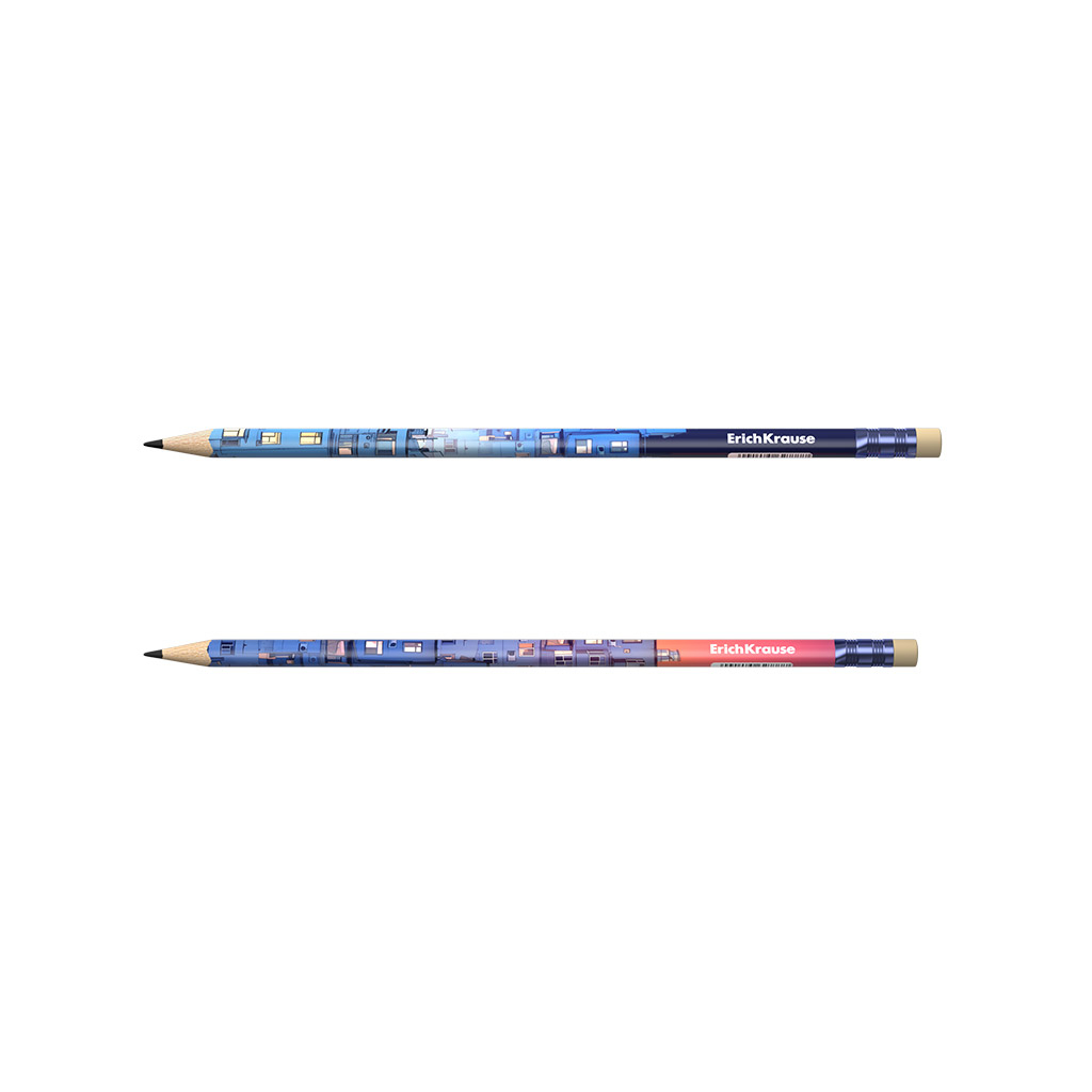Alinierea perfecta a minei in corpul de plastic asigura o ascutire usoara si uniforma, contribuind la o utilizare economica a produsului. Fiecare creion are o lungime de 188 mm si este echipat la capat cu o radiera de duritate medie, realizata din cauciuc termoplastic (TPR) hipoalergenic si ecologic, fara continut de PVC.